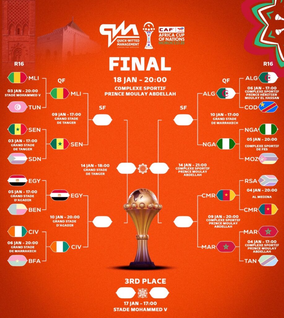 The AFCON 2025 knockout stage has reached the quarter-finals, with all eight teams confirmed following Ivory Coast’s 3-0 victory over Burkina Faso on January 6, 2026.