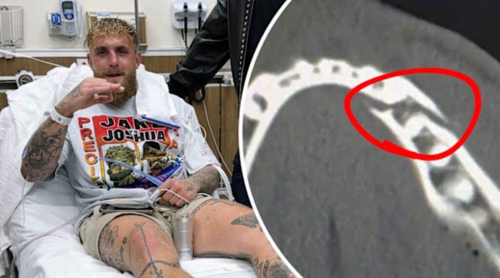 Paul, hospitalized after the fight, posted an X-ray confirming the double jaw fracture but vowed to return and chase a world title.