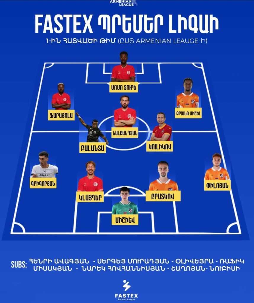 Farayola, who moved to Alashkert FC in July 2025 after a successful spell with FC Van, immediately established himself as a key creative force for his new club. The right-winger’s inclusion in the Best XI highlights his consistency and attacking output across the first 15 matches of the season. In the first round, the dreaded wing-wizard marked a total of 14 appearances scoring with (2) goals and (3) assists to his name amounting to a total of 1,200mins of action recorded.